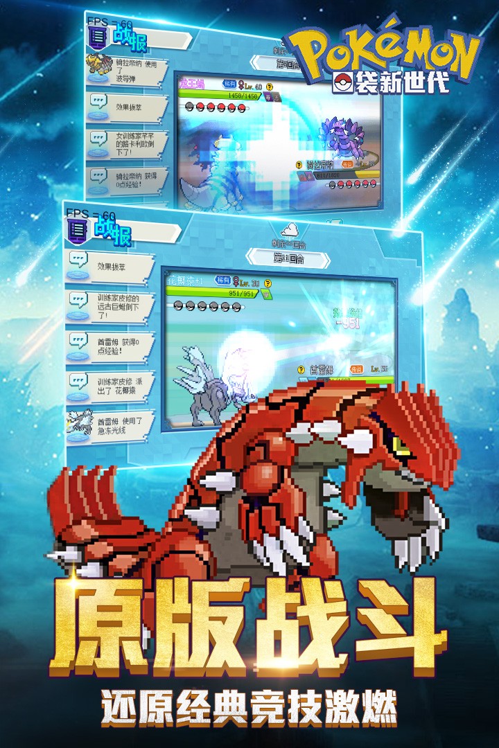 口袋新世代是一款口袋妖怪题材的像素角色扮演手游,游戏有非常高的可玩性和深度,游戏中精灵都拥有众多的技能,每个技能还有不同的分类,在战斗时候,使用不同的技能会产生不同的结果,技能特效尽力还原了原版GBA的风格,快来下载吧!