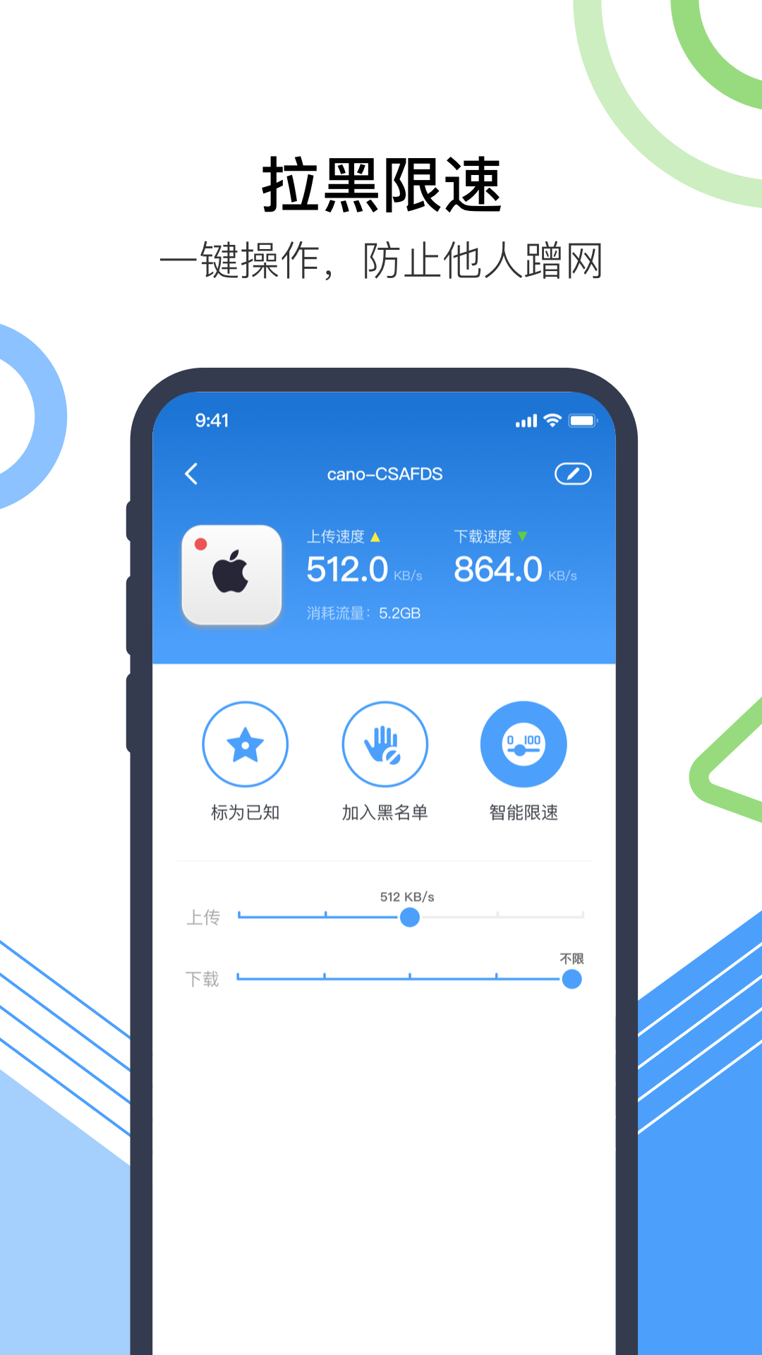 未知设备连入WiFi实时提醒,可以一键拉黑蹭网设备。