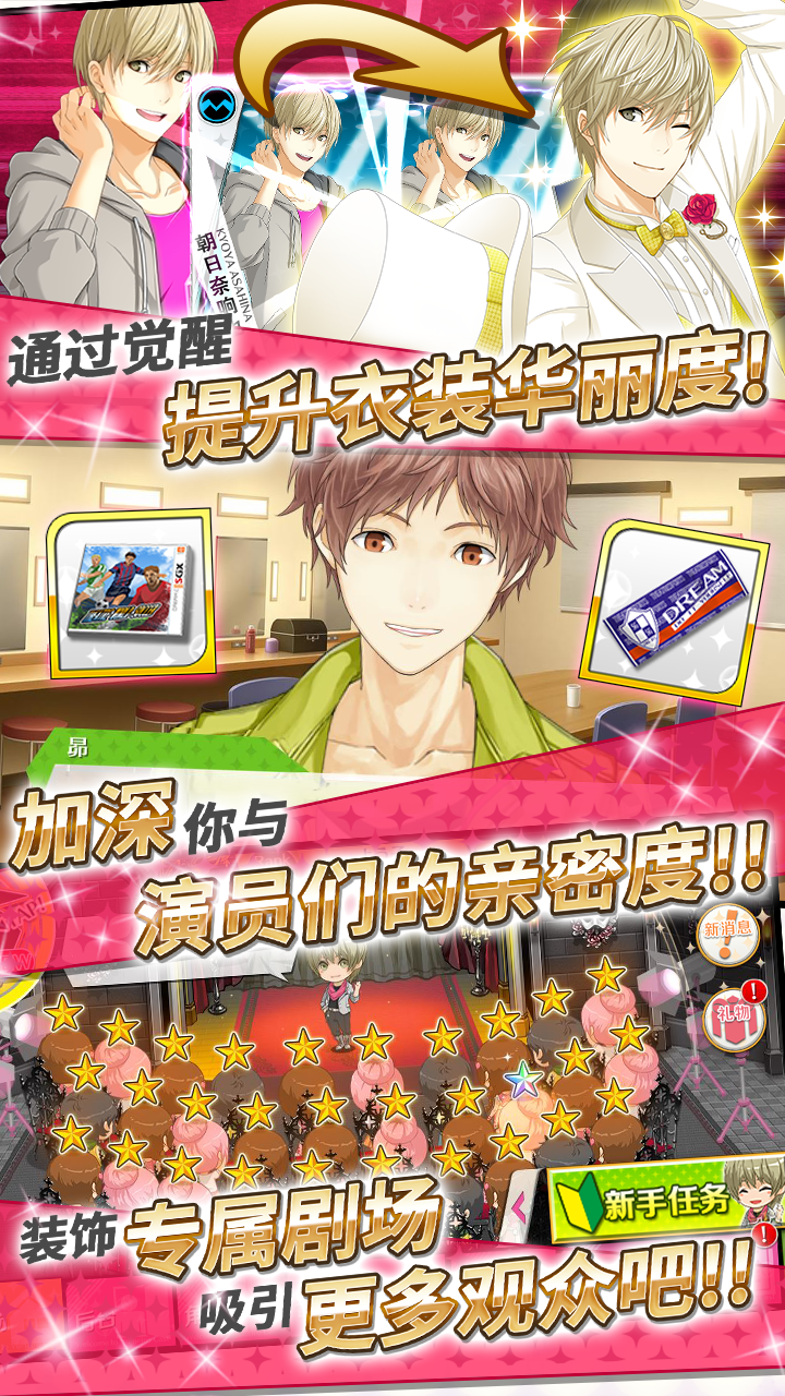 《梦色卡司》是由SEGA开发的一款新体验音乐手游,此作也是SEGA第一次推出的女性向游戏。主要讲述玩家与7名角色偶像一起追逐梦想的物语,提高与偶像的亲密度、上演心跳加速的爱情剧的同时,也要让音乐巡演更精彩!由人气作词家「畑亚贵」初次制作男性作品,角色设计是由在游戏、漫画、插画界都很有人气的作家集团「FiFS」担当,主线剧情全部都配有语音和Live2D(动画技术),使登场角色的表情都体现的淋漓尽致!