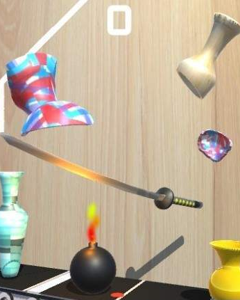 2、在酣畅淋漓的劈砍过程中小心其中的炸弹,砍到炸弹会发生爆炸,导致游戏结束。