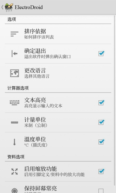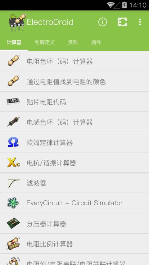 电路专家ElectroDroid是一款集合了电路中各种电子元器件参数的组合工具软件!