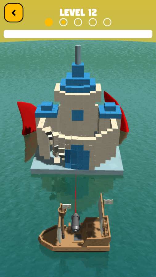 3、容易上手,玩家的小船将会自动围绕城堡巡游,玩家只要通过点击屏幕,即可开炮,非常简单的操作方式。
