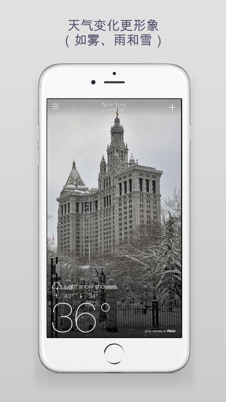1、精湛的画面设计和精美的风景照,尽显你所在之处、四时变化和当前天气状况的特性;