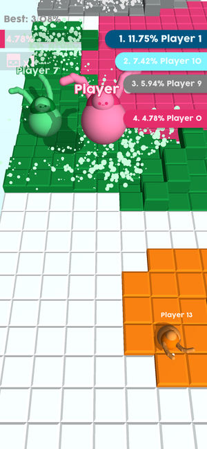 2、让的小人在场景中自由行走,去将地上的方块染成自己的颜色,和其他玩家对抗。