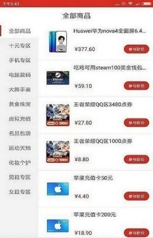 ● 砍价:在线砍价,越砍越低,底价全部1块钱