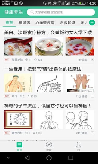 健康养生是一款生活必备的APP软件,界面简洁。这里有海量养生方法供你选择,拯救养生,养生食谱,养生按摩法等,你需要的养生法这里都有。并且设有离线收藏功能,让你随时随地想看就看,感兴趣的小伙伴快来体验一下吧!