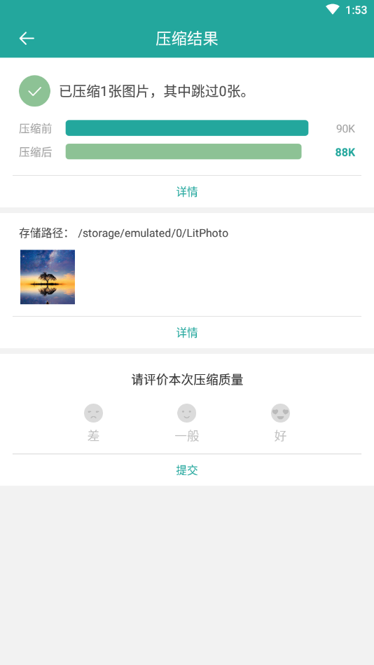 4. 压缩完成后,用户可以保存压缩后的图片,或直接分享到社交媒体平台。