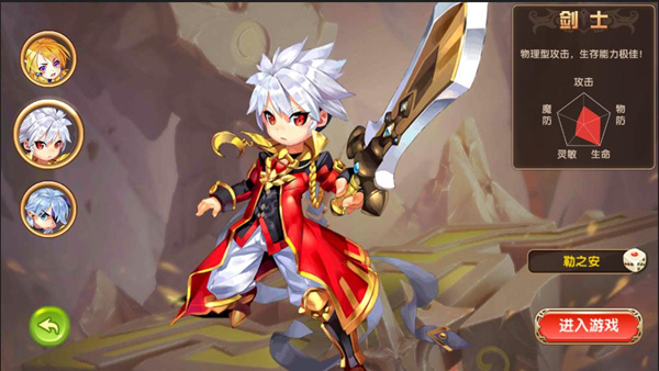 剑士:高血、高防御、攻击中等、选择他就是最强的肉盾了