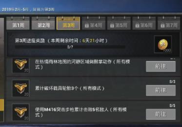 1、在河静地区做鼓掌动作,用M416击败5个敌人这些任务是最简单的,只要玩两把游戏基本都可以完成。