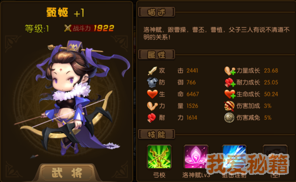 评价:不错的弓兵武将,可以给敌方部队加debuff,并驱散。后期必用武将之一,前期看实力强化。