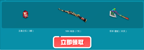 王者之石(1颗)、98K-烛龙(7天)、手斧-雷蛇(30天)