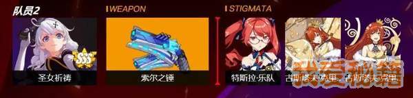 本阵容的主力输出,必然置于队长位置,在拥有索尔之锤提供的脆弱时无论是对何种属性的敌人都能造成可观的伤害,这点是毋庸置疑的。但在暗月天气下,空之律者的属性优势难以体现,双拳难敌四手,常会面对连续刷新的机甲类怪物而感束手无策。因此,需要引入一个辅助来对付各路被空之律者必杀技轰杀后血量仍较多的机甲。