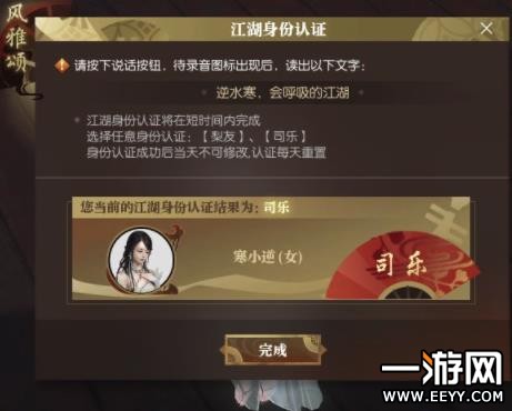 玩法有两种江湖身份可以选择:善音律者,可任"司乐";善倾听者,可任"梨友"。