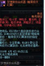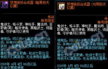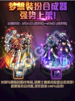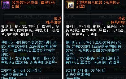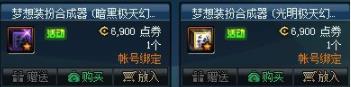 梦想装扮合成器分暗黑和光明两种,分别用来合成暗黑极天幻翼和光明极天幻翼。