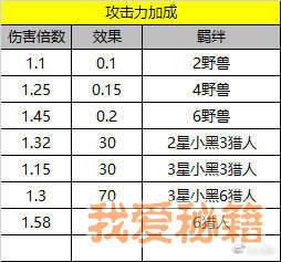 2亡灵+3猎人,两星小黑的伤害加成达到了1.58,相当于6猎人的平均伤害加成了,极其的高。而对于亡灵猎来说,6猎人两亡灵的伤害加成是1.8802,两星小黑的3猎人4亡灵的伤害加成是1.82,几乎没有差别,但是却少了一个人口。