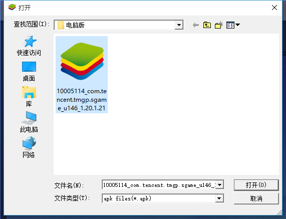 打开蓝叠模拟器,稍等片刻,然后依次按照点击安装本地APK→找到下载的APK文档所在位置→开始安装的顺序进行操作。