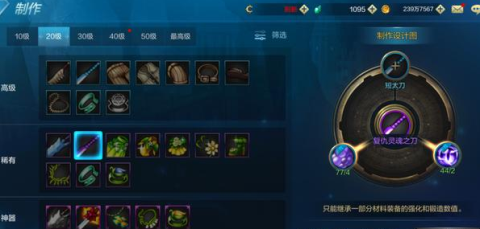 在了解了各类材料的获取途径之后,还需要了解升级装备所需材料的数量。高级装备升级所需要的材料的数量明显高于低级装备,因此不要盲目升级。20级蓝装太刀升级为紫装需要4个下级元素结晶和2个稀有灵魂,30级蓝装太刀升级为紫装需要6个下级元素结晶和3个稀有灵魂。