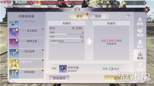 如果对新属性不满意的话,直接再次点击“重铸”按钮即可生成新的属性,直到对属性满意后再点击“替换属性”按钮进行替换!