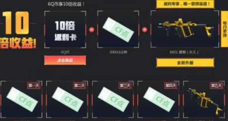 玩家购买"返利卡"后,可每天领取收益(加入任意一局游戏后可领取),总收益可达6倍!
