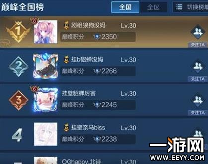我们先来看一张图,这是安卓QQ区巅峰赛的排行榜,其中第一名就是今天的主角西奈,我们可以看见第二名第三名第四名的ID都是同一个意思,直接明示貂蝉是外挂。巅峰赛打到这个程度每次开巅峰赛基本也就是匹配这几个人,很明显这几位玩家都是经常匹配到西奈的,都起了这种名字已经很明显的存在着一些问题。