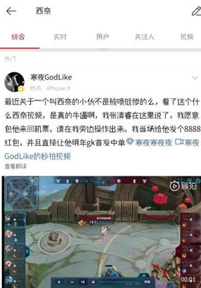 对于西奈的时间在王者荣耀圈算是引起了很大的轰动,很多职业选手和教练都注意到了,寒夜也是在微博表示自己看了西奈貂蝉的视频,表示这个人是真的牛逼,还说要包了西奈的来回机票请西奈在自己身边打出这套操作,如果打的出来就现场给他8888的红包,还让他直接成为明年GK战队的首发中单。