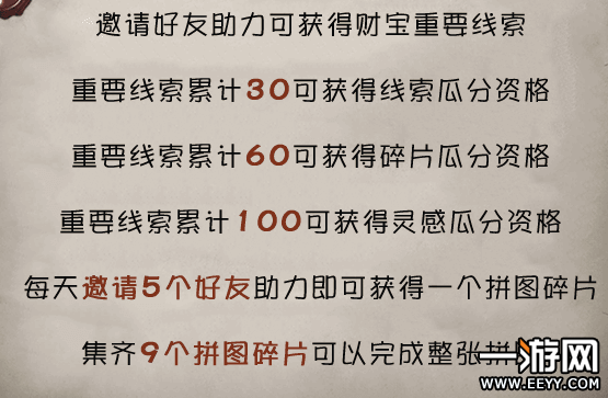 2.分享H5邀请好友助力可获得财宝重要线索,达到相应重要