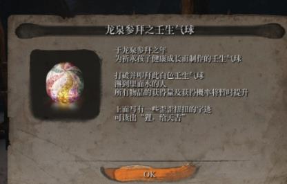 对话完,他便死了,我们长按e即可获得龙泉参拜之壬生气球。
