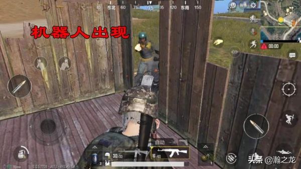 第一步:我找了一辆三轮摩托车,然后找到一个废弃的木厕所。对了,海岛中有两种厕所,上图所示是木厕所,还有一种是石头厕所。我进到废弃的木厕所里面,然后用三轮车堵住厕所的门,之后“哒哒哒”打三轮摩托车打的冒烟。这时候万事俱备只欠东风,这股东风就是上图所示的机器人。只要我在游戏中静止的时间超过20秒钟,机器人一定会出现,戴着绿头盔的机器人看到我就像看到仇人一样,火力全开疯狂输出。