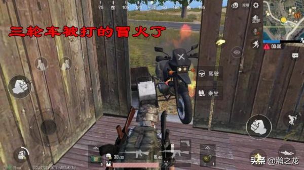 第二步:这个人机打了两梭子子弹后竟然跑到旁边偷偷打药去了,我就纳闷了,我也没还手啊,怎么还装委屈打起药来了呢。从上图可以看到此时三轮摩托车已经变成了三轮“火”车。
