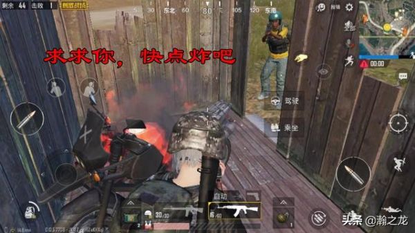 第三步:人机手里拿的难道真是滋水枪?这哥们对着冒火的三轮摩托车打了好几梭子子弹了,摩托车仍然没有爆炸。之后我把摩托车开到了厕所里面,我躲在摩托车后面,这样人机可以更好的把子弹打在摩托车上面。“兄弟,我真的已经尽力了,求求你加把劲,用力打~我宁愿为了这个实验牺牲我自己!”,人机仿佛听到了我的呼唤,继续开始疯狂输出。