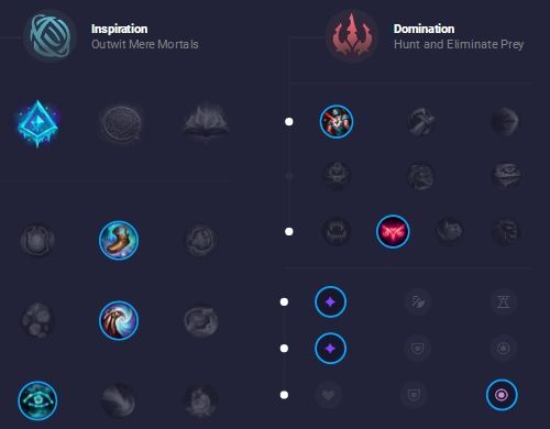 主系启迪系带冰川增幅、神奇之鞋、小兵去质器、星界洞悉,副系主宰带恶意中伤、灵性猎手,属性加成点法强、魔抗。星界洞悉和灵性猎手更能够减少主动道具的冷却时间,更利于Q和R技能的控制。