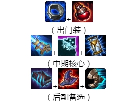 出门装为多兰戒+红药(或腐蚀药剂),中期核心出装为海克斯GLP-800、双生暗影,中娅,后期法强补鬼书、大帽子,鞋子选择法穿鞋。GLP800和双生暗影均不超过3000的售价,性价比很高,在中期的作用不俗。