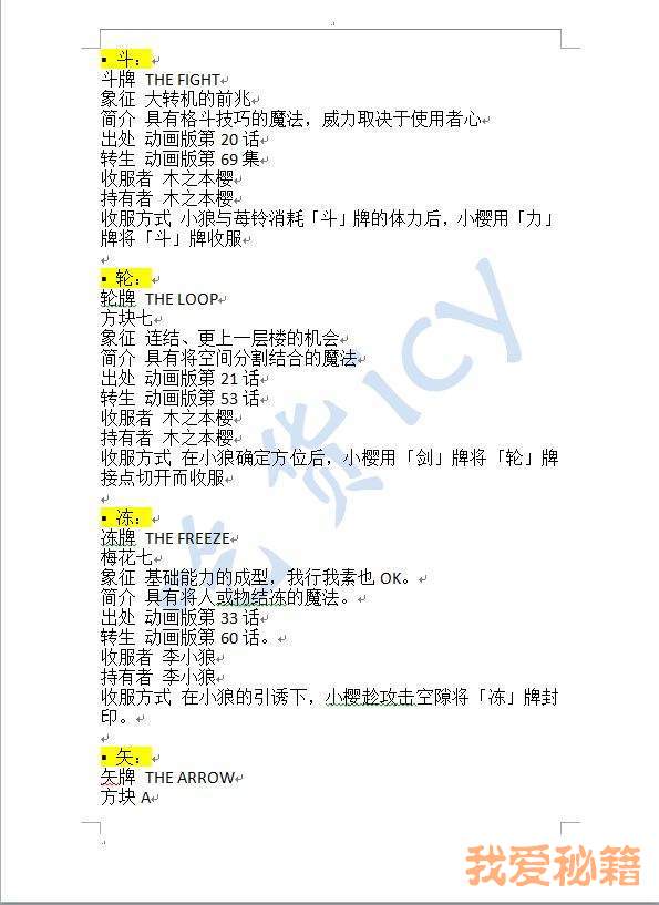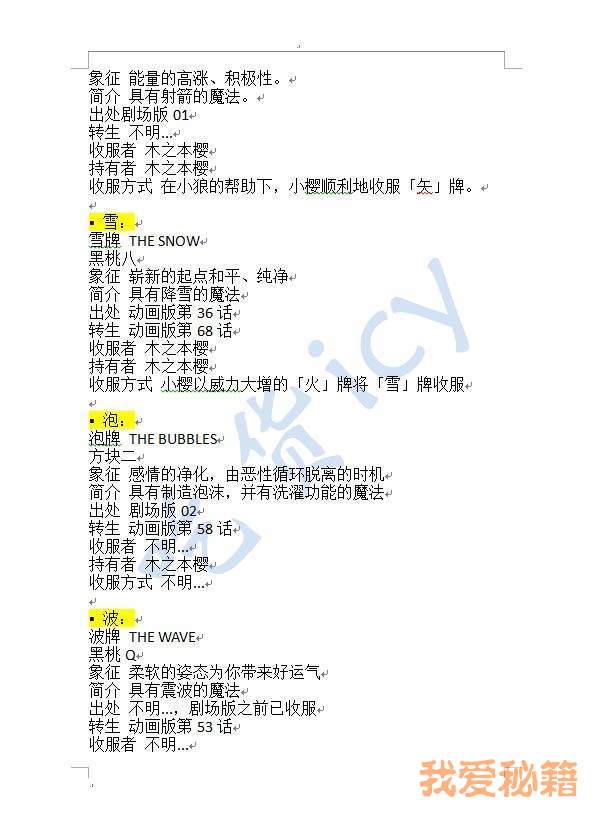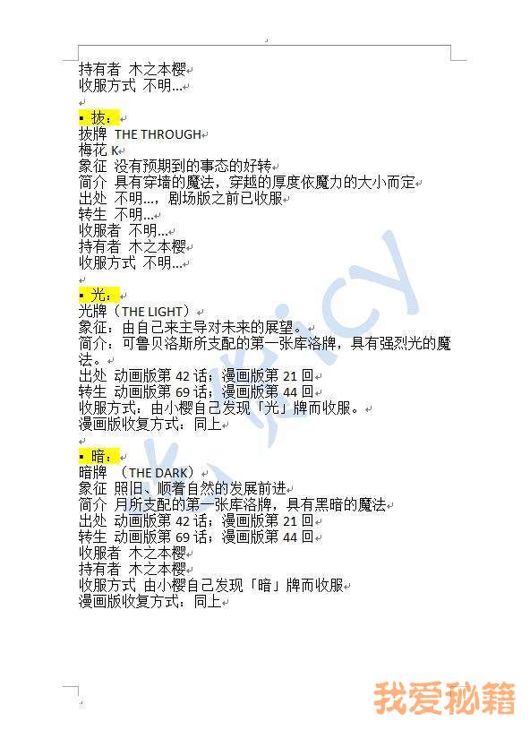 根据《魔卡少女樱》52张库洛牌核对出来暂时没人拿到的牌(一共是53张库洛牌,还有一张被遗落的是希望)