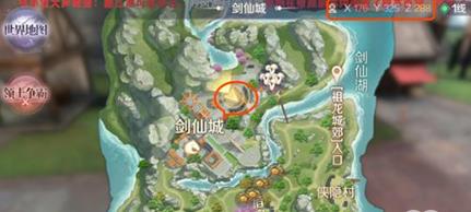 在与刘半仙对话后,便会以红色字体为提示,要求我们自己去寻找到相应位置。所以我们在剑仙城地图中,只需要一路向城南飞行即可找到。为了能够更好的让小伙伴们一目了然,这里大山君也放上一张关于NPC刘半仙所指的地点。