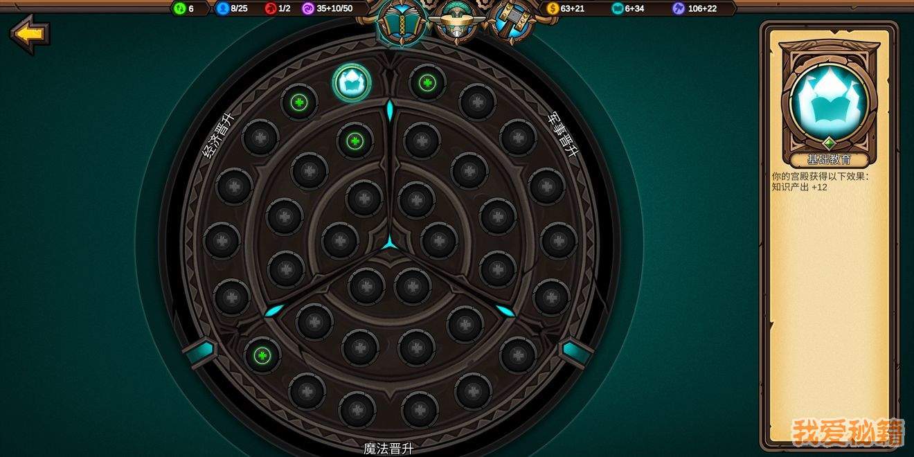 看知识100了,可以升级科技,点击中上的书籍图标,第一个升级基础教育,每回合+12点知识