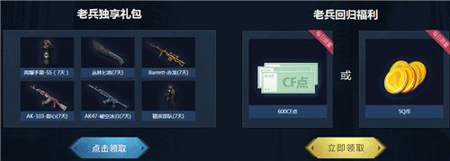 活动期间满足条件的老兵完成任意游戏一局即可领取5QB或600CF点(奖励仅限完成条件后当日领取,每日限量)