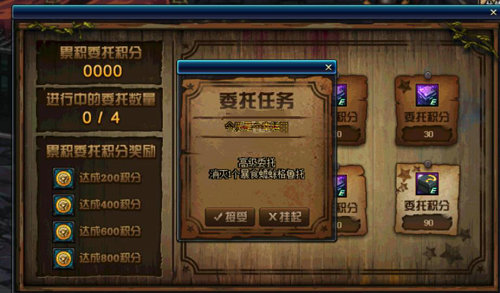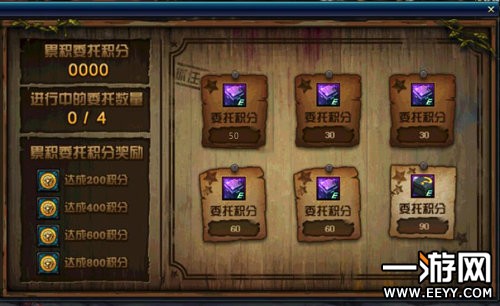 完结可以累计委托积分,,例如达成200、400、600、800,根据积分可以获得不同的奖励。