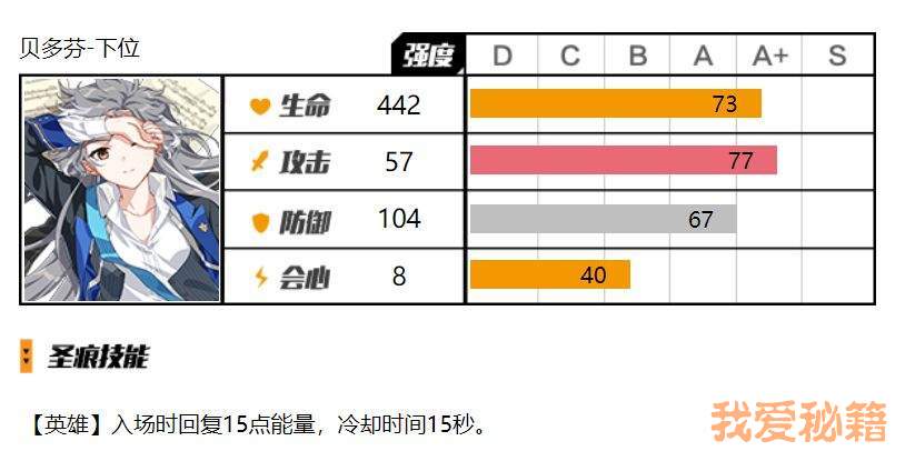 下位: 15秒一次的入场回15SP,极具战略价值,开发潜力巨大 ,通常单件使用。