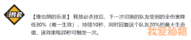 触发机制与两件套相同,减伤效果和回复量都比较可观,但实战价值不高,理由如下: