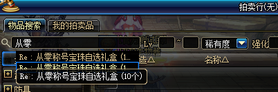 玩家根据体验服当中的拍卖行搜索得到了有关Re0的内容,玩家可以搜索到比如从零称号自选宝珠礼盒、爱蜜莉雅的慰藉、拉姆的鼓舞、雷姆的真心等内容。