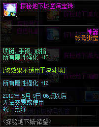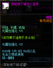 开启后,可以从探秘地下城全圆满宝珠、探秘地下城火之宝珠、探秘地下城冰之宝珠、探秘地下城光之宝珠、探秘地下城暗之宝珠中选择获得1个。