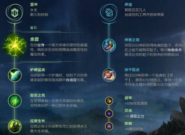 吾单那种电刑的符文搭配容错率比较低,而余震符文更适合法坦英雄,前期给予高额的抗性加成,而且还能提供一些输出能力。有些玩家副系选择巫术系来获得法力流系带和焦灼效果,不过启迪系的符文实用性更强一些。