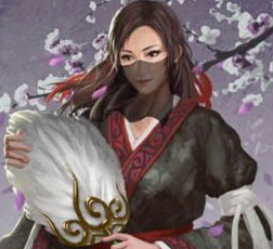 而另一张图片显示黄月英手里拿着一把双刀,或者剑,抑或是匕首吧,人物眼神和发型和阿轲有点像。而带着一个口罩又有点像兰陵王,看来黄月英是一个“女版的兰陵王”