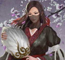 而另一张图片显示黄月英手里拿着一把双刀,或者剑,抑或是匕首吧,人物眼神和发型和阿轲有点像。而带着一个口罩又有点像兰陵王,看来黄月英是一个“女版的兰陵王”