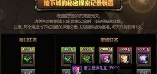 其实这次探秘地下城最重要的奖励就是另一部分,在活动图标界面,有着完成进度奖励,而这部分需要玩家点开图标才能看到,如果不注意,并且不选择去参与活动,活动奖励根本不会主动弹出。而这部分奖励其实跟毕业息息相关,所以如果装备还没有完成95a+史诗的,可别错过了毕业机会。