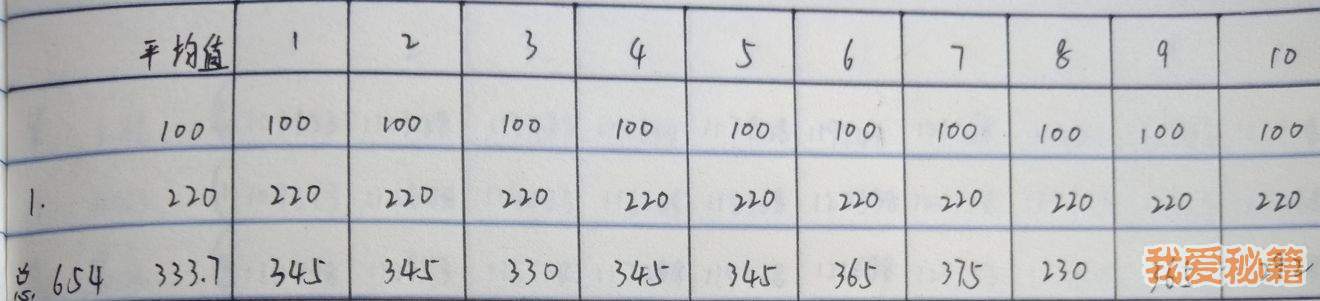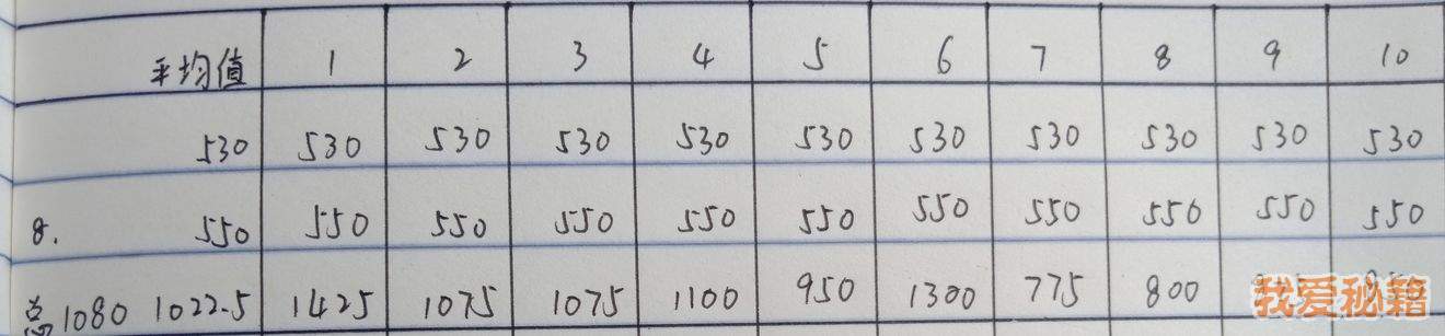 本着求知的心态,就把九大关每关刷了十遍,并记录了以下数据: