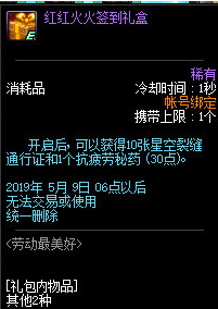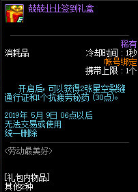 开启后,可以获得10张星空裂缝通行证和1个抗疲劳秘药(30点)。