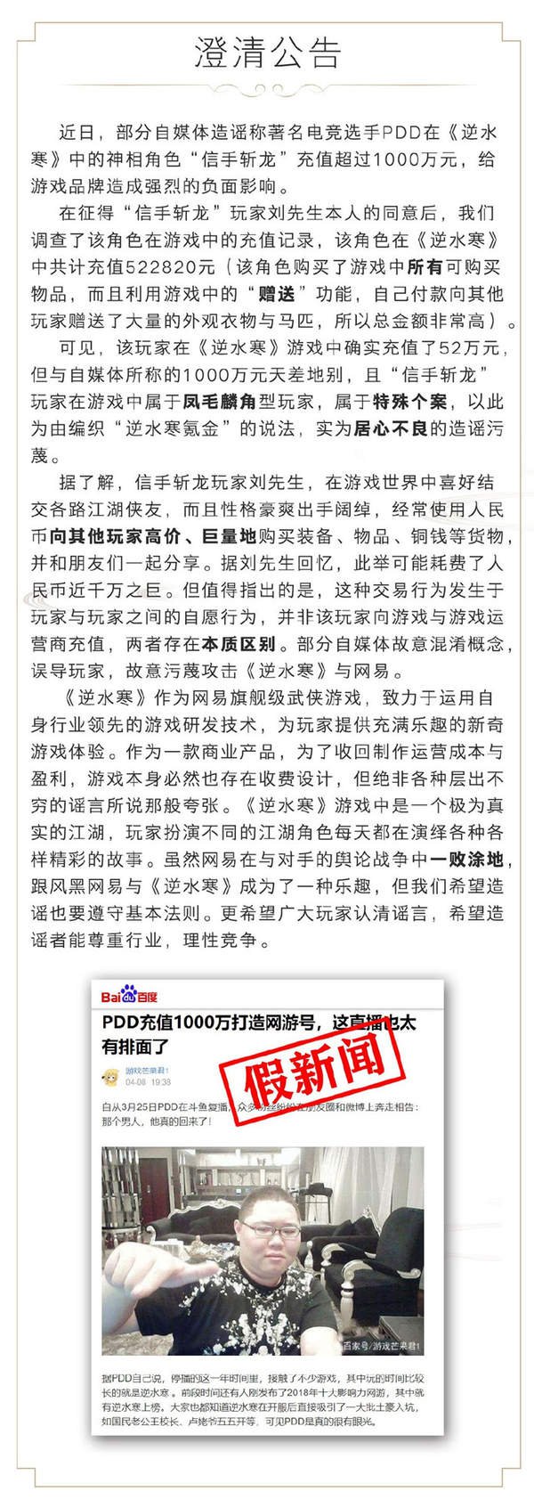 以上就是PDD逆水寒充值1000万和逆水寒辟谣PDD事件的来龙去脉,希望能对各位有所帮助,最后就是希望大家能够理性吃瓜,不要随便相信网络上的一些言论吧。