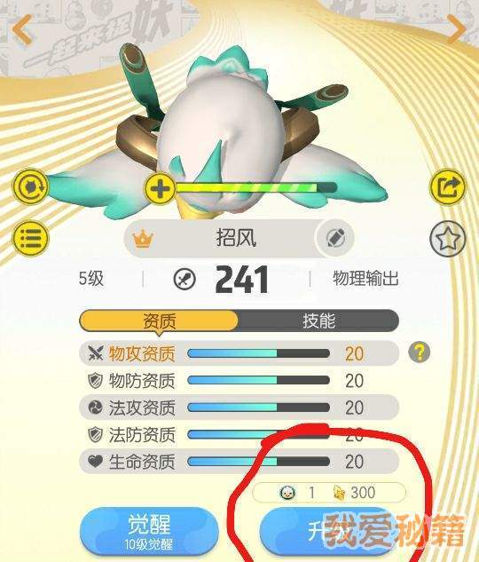其实,我们可以在妖灵升级界面清楚的看到,升级妖灵所需要最关键的物品就是符印。