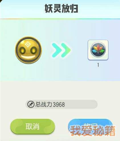 除此之外,在妖灵界面的左侧有一个放归按钮,点击即可当归妖灵,从而收获从妖灵那儿得来的符印啦。虽然,捉了妖灵又当归可能有些戏弄妖灵,对妖灵进行绑架勒索的嫌疑,但是为了符印也只能牺牲这些萌萌哒妖灵啦。